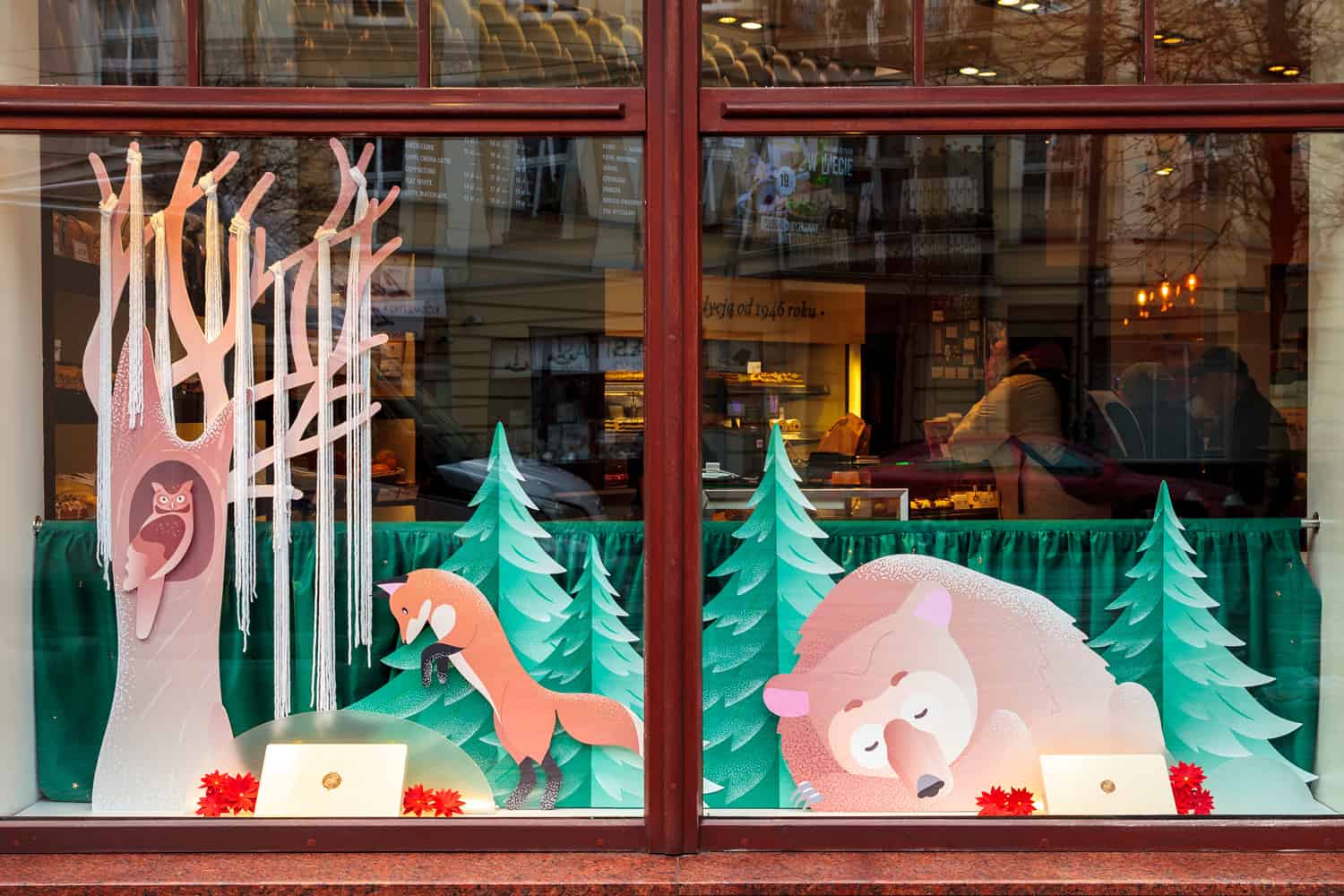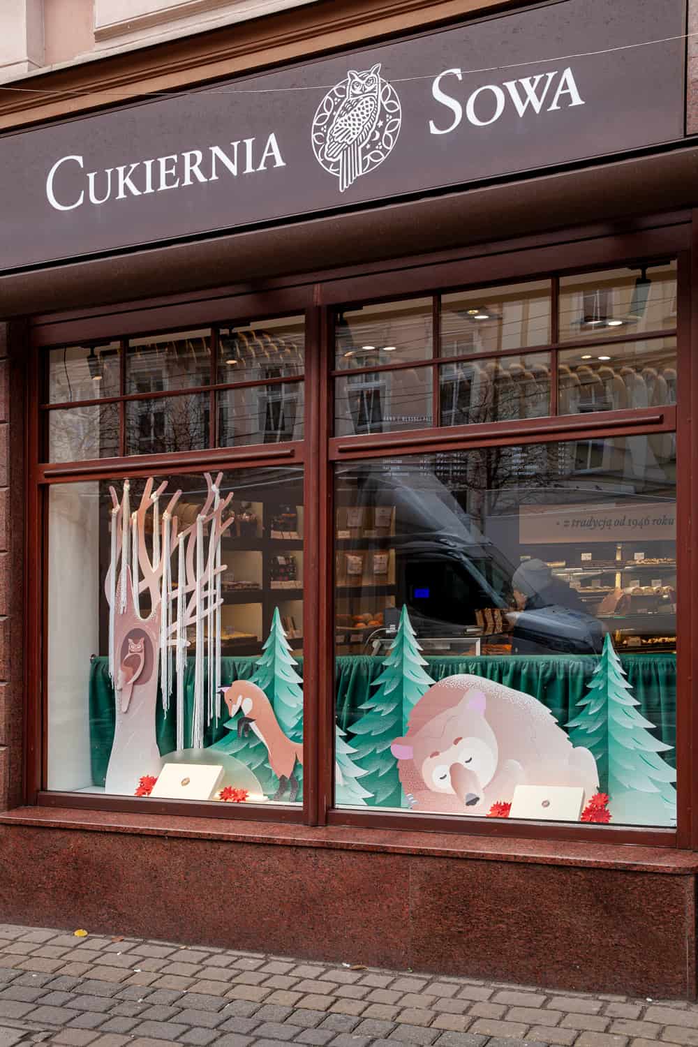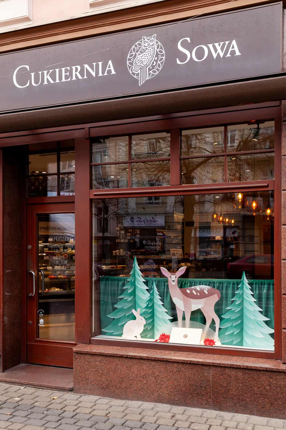 Na bydgoskich i wrocławskich witrynach @cukierniasowa z moją pomocą zagościł zimowy las, przyprószony śniegiem a może słodkim cukrem pudrem? Zdecydujcie sami i skosztujcie tych słodkości.